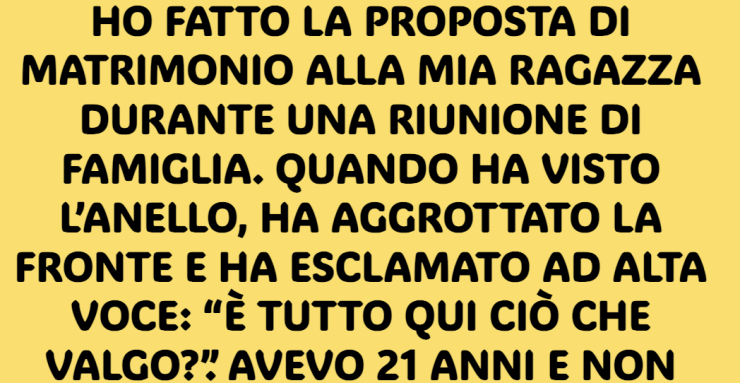 Quando ha visto l’anello, ha aggrottato la fronte e ha sbottato ad alta voce: «È tutto qui ciò che valgo?»