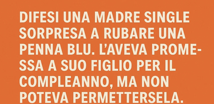 Per un momento non riuscii a parlare. Ricordavo quel giorno come fosse ieri. Lei tremava in tribunale. Si chiamava Adina. La penna costava 4,99 dollari. Era stata accusata di furto per via di una politica rigida del negozio. Non chiedeva pietà, solo giustizia. E io gliela diedi.
