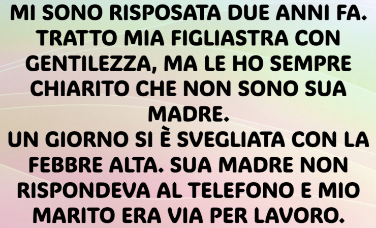 Un giorno si è svegliata con la febbre alta. Sua madre non rispondeva al telefono e mio marito era via per lavoro.