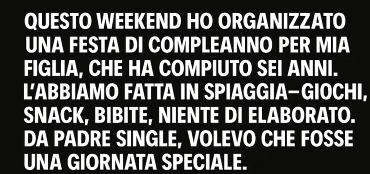 Come padre single, sentivo il peso di rendere tutto speciale, così avevo pensato a qualche gioco da spiaggia: caccia al tesoro, tiro alla fune… Niente di elaborato, solo un modo per regalare a Sabine una giornata felice.