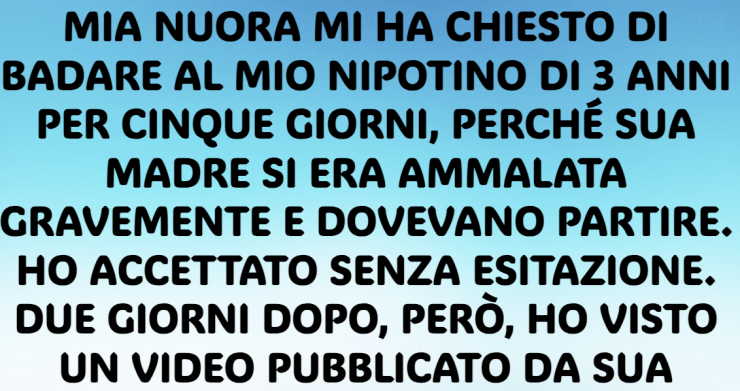 Mia nuora mi aveva chiesto di occuparmi del mio nipotino di tre anni per cinque giorni, perché sua madre si era ammalata gravemente e loro dovevano partire. Ho accettato subito.