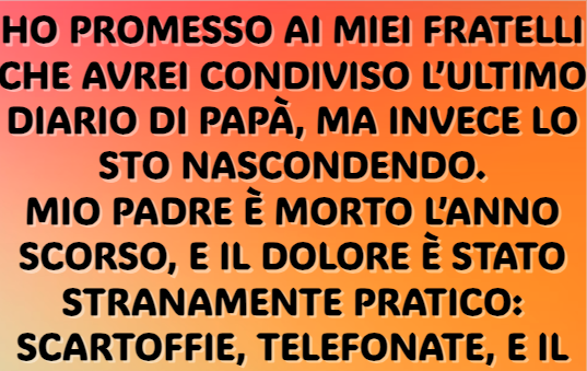 Ho promesso ai miei fratelli che avrei condiviso l’ultimo diario di papà, ma invece lo sto nascondendo