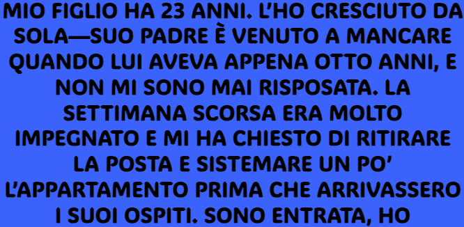 Mio figlio ha 23 anni. L’ho cresciuto da sola—suo padre è venuto a mancare quando lui aveva solo otto anni, e non mi sono mai risposata.