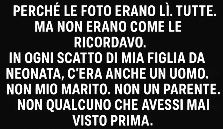 Tra gli scatti sfocati e stanchi di ospedali, tutine e il suo sorriso sdentato, c’era una foto che non ricordavo di aver mai scattato. Mia figlia, appena due settimane, tra le braccia di una donna che non conoscevo. Non era un’infermiera. Non era un’amica. E sicuramente non era un parente.