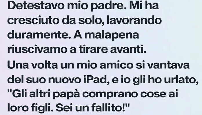 Un pomeriggio, un mio amico arrivò a scuola sventolando un iPad nuovo di zecca, vantandosi che suo padre glielo avesse “regalato a sorpresa”. Tutti si radunarono intorno a lui, ammirati. Io sorridevo, ma dentro di me qualcosa si spezzò.