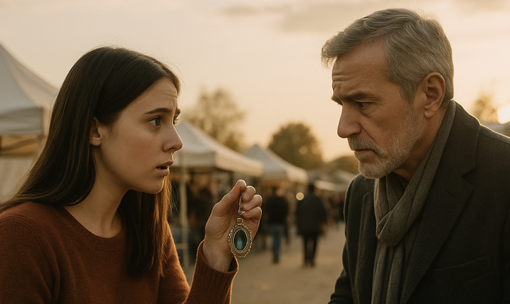 Un uomo si fermò di colpo. Sui sessant’anni, capelli grigi sulle tempie, occhi intensi. Guardava il ciondolo. Non come se lo desiderasse, ma come se lo riconoscesse.