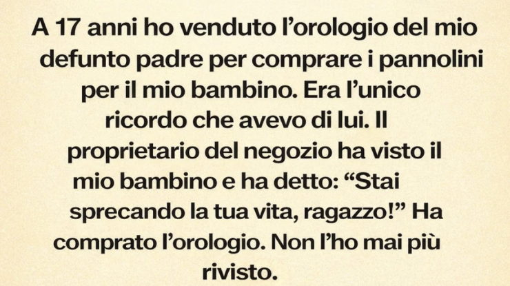 Era morto quando avevo sette anni. Non lo avevo conosciuto davvero, ma quell’orologio era il suo battito che non smetteva di vivere. Lo caricavo di tanto in tanto solo per sentire il ticchettio, fingendo che fosse il suono del suo cuore. Venderlo significava recidere l’ultimo legame con lui.