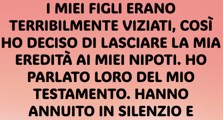 I miei figli erano terribilmente viziati, così ho deciso di lasciare la mia eredità ai miei nipoti. Quando ho detto loro del testamento, hanno annuito in silenzio e detto: “Lo sapevamo, mamma.”