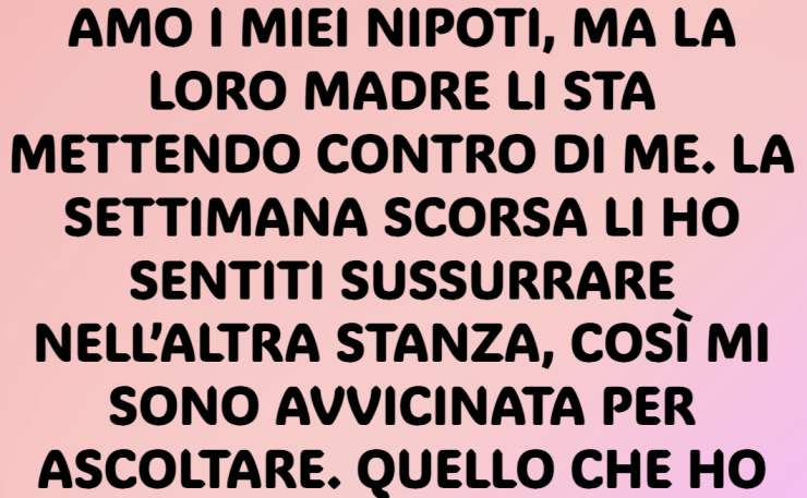 Amo i miei nipoti, ma la loro madre li sta mettendo contro di me. La scorsa settimana li ho sentiti sussurrare nell’altra stanza, così mi sono avvicinata per ascoltare. Quello che ho sentito mi ha gelato il sangue.