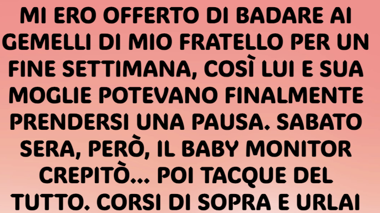 Mi ero offerto di badare ai gemelli di mio fratello per un fine settimana, così lui e sua moglie potevano finalmente concedersi una pausa. Ma sabato sera, il baby monitor crepitò… e poi si spense. Corsi di sopra e urlai: solo una culla era occupata. La porta d’ingresso era spalancata, e accanto c’era un biglietto:
