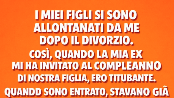 “So che tu e la mamma non siete più sposate,” ha detto, notando la mia espressione, “ma siamo ancora una famiglia, giusto?”