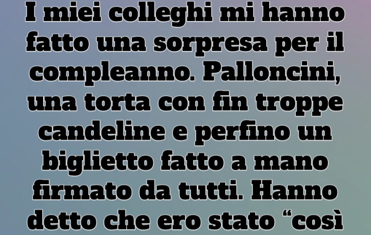 I miei colleghi mi hanno fatto una sorpresa per il compleanno. Palloncini, una torta con fin troppe candeline e perfino un biglietto fatto a mano firmato da tutti. Hanno detto che ero stato “così gentile con loro”. Io ho sorriso, facendo finta di prenderla con disinvoltura. Quello che non sanno è che era il primo compleanno che qualcuno festeggiava per me dopo anni.