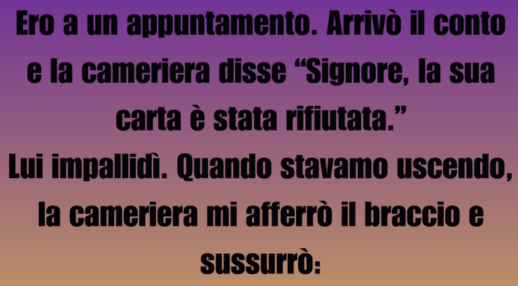 Ero a un appuntamento. Arrivò il conto e la cameriera disse: