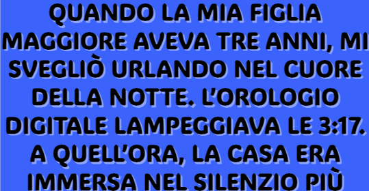 Quando la mia figlia maggiore aveva tre anni, mi svegliò urlando nel cuore della notte. L’orologio digitale lampeggiava le 3:17. A quell’ora, la casa era immersa nel silenzio più profondo. Mio marito, Mark, lavorava di notte come guardia giurata in un ospedale di Seattle, così in casa c’eravamo solo io e lei. Il suo grido improvviso mi fece sobbalzare, spazzando via il torpore del sonno.
