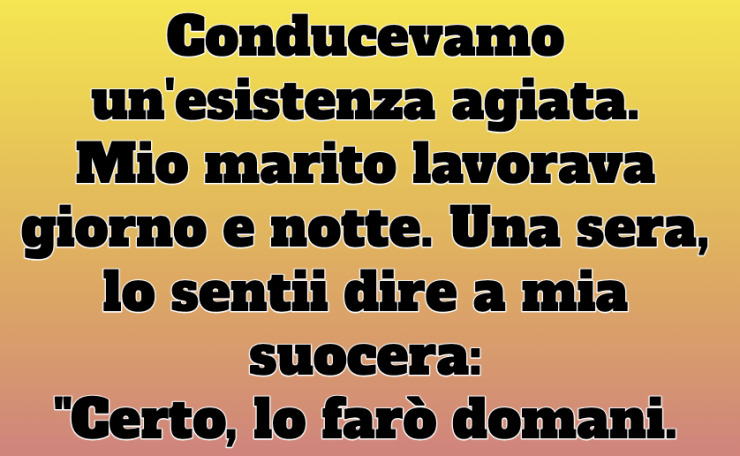 Conducevamo una vita agiata. Mio marito lavorava giorno e notte. Una sera, lo sentii dire a mia suocera: “Certo, lo farò domani. La solita cifra”. La chiamai subito, esigendo che restituisse il denaro. Sembrò scioccata: “Cosa intendi? Non ti ha mai parlato del denaro che mi passa ogni mese?”