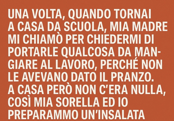 Quella sera, mentre facevo i compiti, lo stomaco mi brontolava. Io e mia sorella ci dividemmo l’ultimo pezzo di pane che avevamo in casa—solo tostato, senza burro—facendo finta che andasse bene così. Eravamo abituati. Ma dentro di me qualcosa era cambiato. Cominciai a notare i dettagli: come spesso mia madre saltasse i pasti. O come le sue scarpe avessero del nastro adesivo sotto le suole.