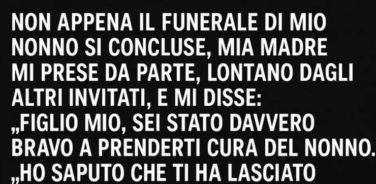 Non appena il funerale di mio nonno finì, mia madre mi prese da parte, lontano dagli ospiti, e mi disse: