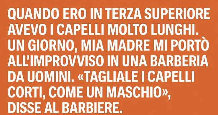 Quando ero in terza superiore avevo i capelli molto lunghi. Un giorno, mia madre mi portò all’improvviso in una barberia da uomini.