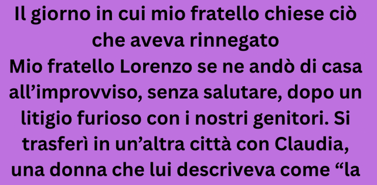 Mio fratello Lorenzo se ne andò di casa all’improvviso, senza salutare, dopo un litigio furioso con i nostri genitori. Si trasferì in un’altra città con Claudia, una donna che lui descriveva come “la sua unica ragione di vita”. Non la vedevamo di buon occhio: non per chi fosse, ma per il modo in cui sembrava trascinarlo in scelte avventate, spesso segnate da debiti e promesse mai mantenute.