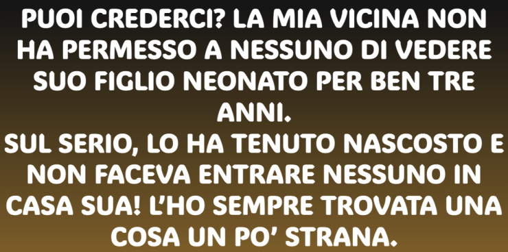 Riuscite a crederci? La mia vicina non ha lasciato che nessuno vedesse suo figlio neonato per ben tre anni.