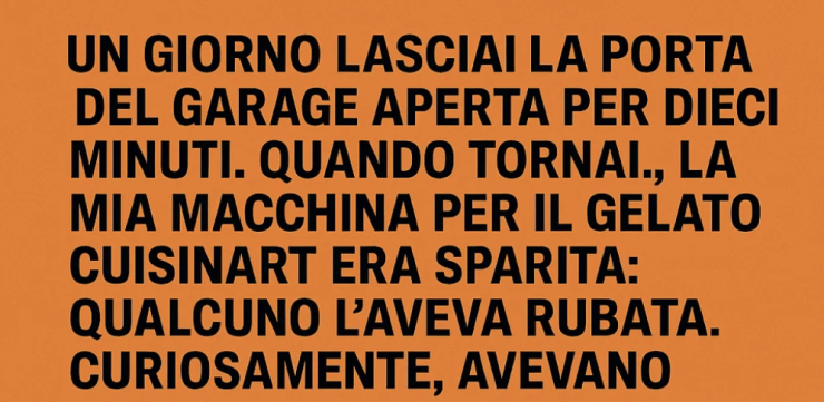 Un giorno lasciai la porta del garage aperta per dieci minuti. Quando tornai, la mia macchina per il gelato Cuisinart era sparita: qualcuno l’aveva rubata. Curiosamente, avevano preso la macchina ma non la ciotola necessaria per fare il gelato.
