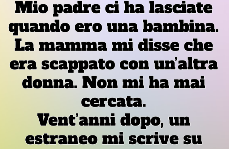 Mio padre ci ha lasciate quando ero una bambina. La mamma mi disse che era scappato con un’altra donna. Non mi ha mai cercata.