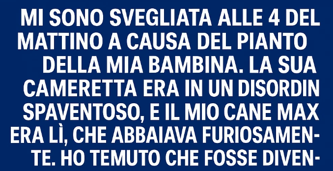 Max, il nostro meticcio Labrador di sei anni, abbaiava come un forsennato, girando intorno alla culla. La stanza sembrava devastata—coperte per terra, la giraffa di peluche a metà distrutta, peli di Max sparsi ovunque. Quando entrai, stava ringhiando a bassa voce, e d’istinto, gli urlai contro: