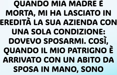 Quando mia madre è morta, mi ha lasciato in eredità la sua azienda con una sola condizione: dovevo sposarmi. Così, quando il mio patrigno è arrivato con un abito da sposa in mano, sono andata nel panico e ho indicato un barista: