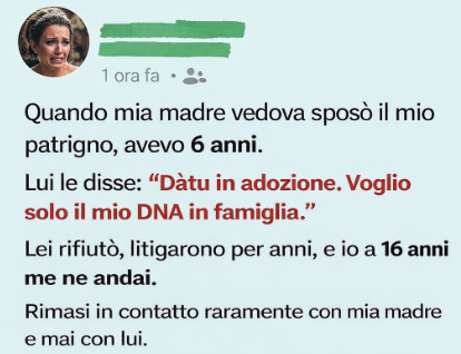Quando mia madre, rimasta vedova, sposò il mio patrigno, avevo sei anni — abbastanza grande per percepire la tensione, ma troppo piccola per comprenderne la causa. Quello che capii, però, fu il momento in cui lui mi guardò con occhi freddi, calcolatori, e disse a mia madre: