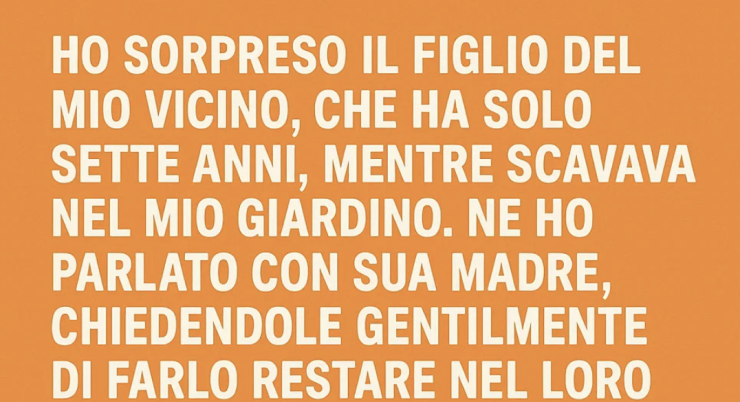 Ho sorpreso il figlio del mio vicino, sette anni appena, mentre scavava nel mio giardino. Ho parlato con sua madre, chiedendole gentilmente di farlo restare nel loro cortile. Lei ha riso, liquidando tutto con un “È solo un bambino”.