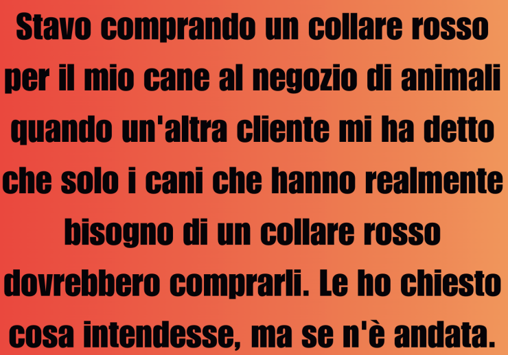 Stavo acquistando un collare rosso per il mio cane in un negozio per animali quando un’altra cliente mi disse che solo i cani che ne avevano davvero bisogno dovevano indossarne uno.