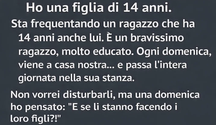 Un tranquillo pomeriggio di domenica sentii delle risate provenire dalla porta chiusa della sua camera. Era una risata calda, familiare, accompagnata dal lieve salire e scendere di due adolescenti che cercavano di parlare a bassa voce. Suo fidanzatino — anche lui quattordicenne — stava facendo visita, come spesso accadeva la domenica.