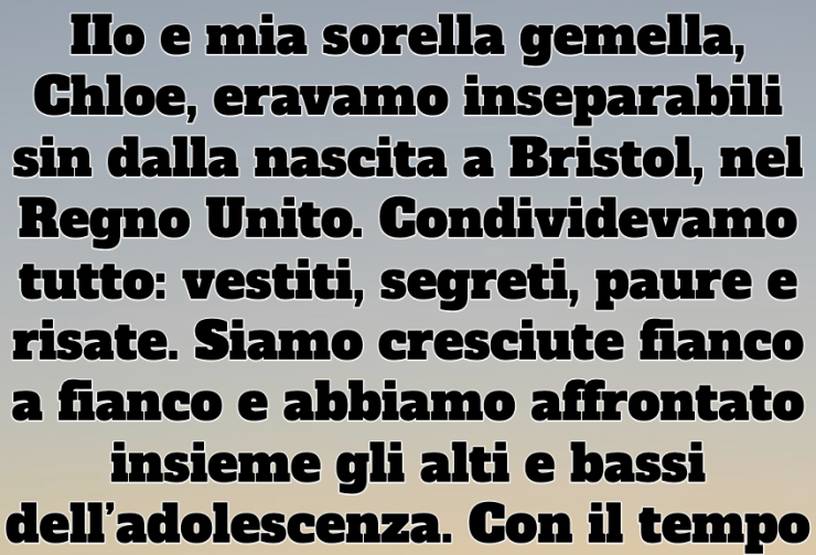 Io e mia sorella gemella, Chloe, eravamo inseparabili sin dalla nascita a Bristol, nel Regno Unito. Condividevamo tutto: vestiti, segreti, paure e risate. Siamo cresciute fianco a fianco e abbiamo affrontato insieme gli alti e bassi dell’adolescenza. Con il tempo è nata in noi un’ambizione condivisa: entrare alla prestigiosa Università di Edimburgo. Ci sembrava l’unico modo per proseguire la nostra esistenza simbiotica anche da adulte.