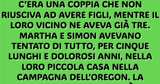 C’era una coppia che non riusciva ad avere figli, mentre il loro vicino ne aveva già tre. Martha e Simon avevano tentato di tutto, per cinque lunghi e dolorosi anni, nella loro piccola casa nella campagna dell’Oregon. La diagnosi di infertilità inspiegabile era stata devastante, trasformando il sogno di una famiglia in un lungo periodo di silenzioso dolore. Simon, in particolare, provava un profondo senso di fallimento: non riusciva a dare a Martha ciò che lei desiderava più di ogni altra cosa al mondo.