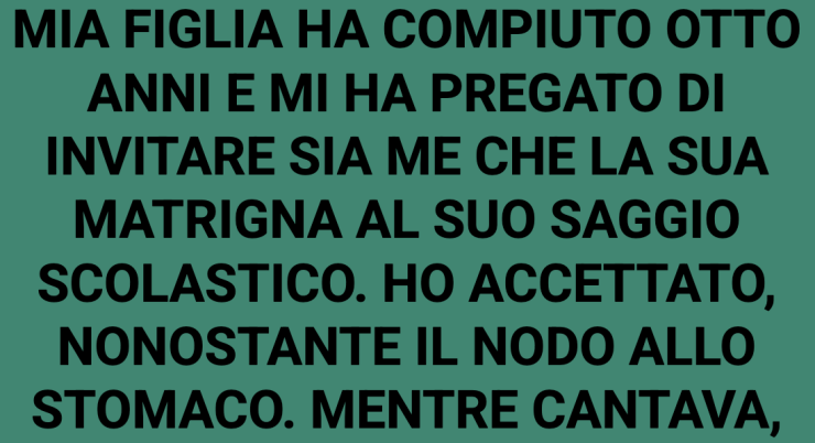 Mia figlia aveva appena compiuto otto anni e mi aveva pregato di invitare sia me che la sua matrigna al suo saggio scolastico. Ho accettato, nonostante il nodo allo stomaco.