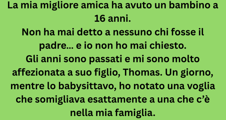 Ma più ci pensavo, più tutto tornava. La voglia, il test—era tutto connesso. Thomas era mio nipote, la mia famiglia in un modo che non avevo mai immaginato. Ormai non potevo più negarlo.