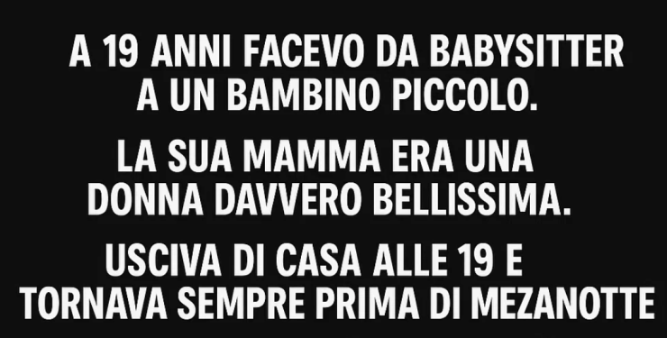 Avevo 19 anni e facevo la babysitter a un bambino. Sua madre era bellissima. Usciva di casa alle 19 e tornava sempre prima di mezzanotte. Una sera, però, non tornò. Mi preoccupai: non rispondeva al telefono. Alle 3 del mattino accesi la TV… e rimasi paralizzata. C’era la sua foto al telegiornale: risultava scomparsa.