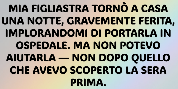 Una notte, mia figliastra tornò a casa gravemente ferita, supplicandomi di portarla in ospedale. Ma non potevo aiutarla — non dopo quello che avevo scoperto la sera prima. Fu costretta a chiamare da sola un’ambulanza. Quando mio marito lo venne a sapere, si infuriò. Non riusciva a capire il perché, così glielo dissi.