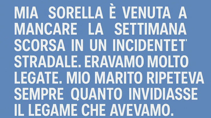 Mia sorella è morta la settimana scorsa in un incidente d’auto. Eravamo molto legate. Mio marito ripeteva spesso quanto invidiasse il legame che avevamo.