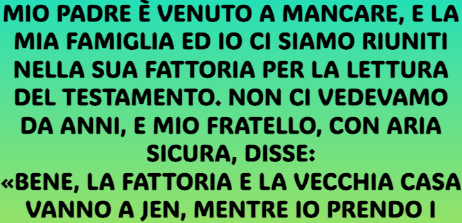 Mentre l’avvocato leggeva il testamento di mio padre, l’atmosfera nella stanza si faceva sempre più pesante. Fuori, la pioggia batteva ritmicamente contro i vetri, come a scandire il tempo della mia crescente ansia.