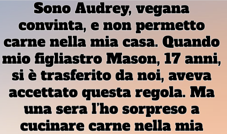 Sono Audrey, vegana convinta, e non permetto carne nella mia casa. Quando mio figliastro Mason, 17 anni, si è trasferito da noi, aveva accettato questa regola. Ma una sera l’ho sorpreso a cucinare carne nella mia cucina. Ho perso il controllo e gli ho ordinato di andarsene. Poco dopo ho sentito un tonfo, e il sangue mi si è gelato: Mason era crollato sul pavimento, con la padella rovente che scivolava via sulle piastrelle. La sua pelle era del colore della cenere.