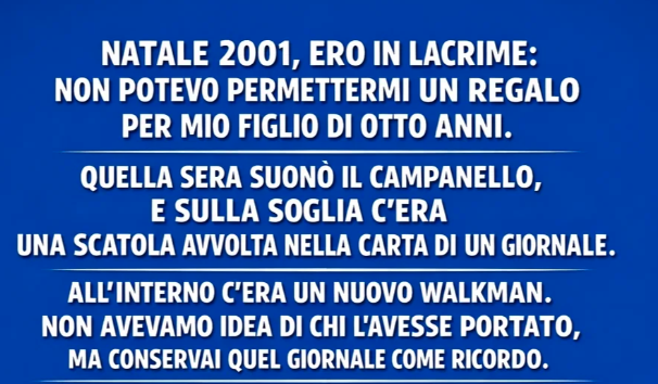 Natale 2001, ero in lacrime: non potevo permettermi un regalo per mio figlio di otto anni. Quella sera suonò il campanello, e sulla soglia c’era una scatola avvolta nella carta di un giornale. All’interno c’era un Walkman nuovo di zecca. Non avevamo idea di chi l’avesse portato, ma conservai quel giornale come ricordo. Quindici anni dopo, durante un trasloco, lo ritrovai. Sentii un brivido inquietante: la notizia stampata su quella pagina parlava di una piccola raccolta benefica locale per famiglie in difficoltà, svoltasi all’inizio di dicembre di quell’anno.