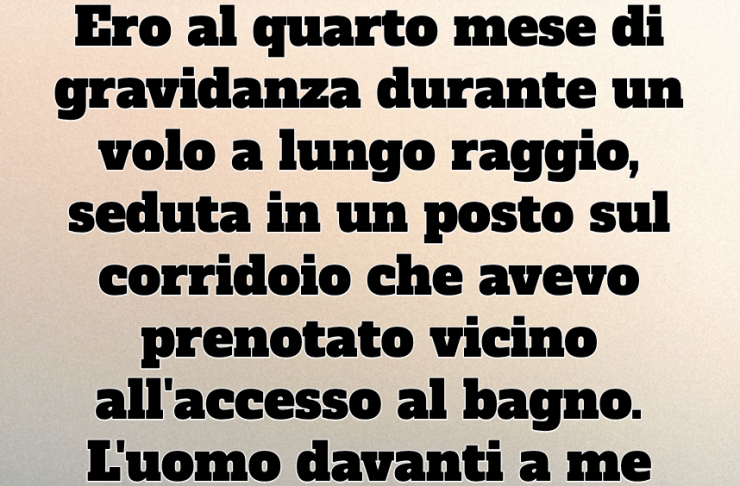 Ero al quarto mese di gravidanza durante un volo a lungo raggio, seduta in un posto sul corridoio che avevo prenotato vicino all’accesso al bagno. L’uomo davanti a me abbatté il suo schienale contro la mia pancia. Gli chiesi di regolarlo, ma borbottò soltanto: “Comprati un biglietto in prima classe”. Così rimasi seduta, stordita per un attimo. Le mie mani andarono istintivamente alla pancia, come se potessi proteggere il mio bambino da quel tipo di maleducazione.