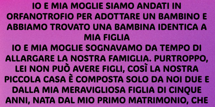 Rimasi pietrificato. Mia moglie, accanto a me, sembrava sul punto di svenire. La bambina che ci stava davanti era la copia perfetta di mia figlia, quella che in quel momento era a casa con la tata.