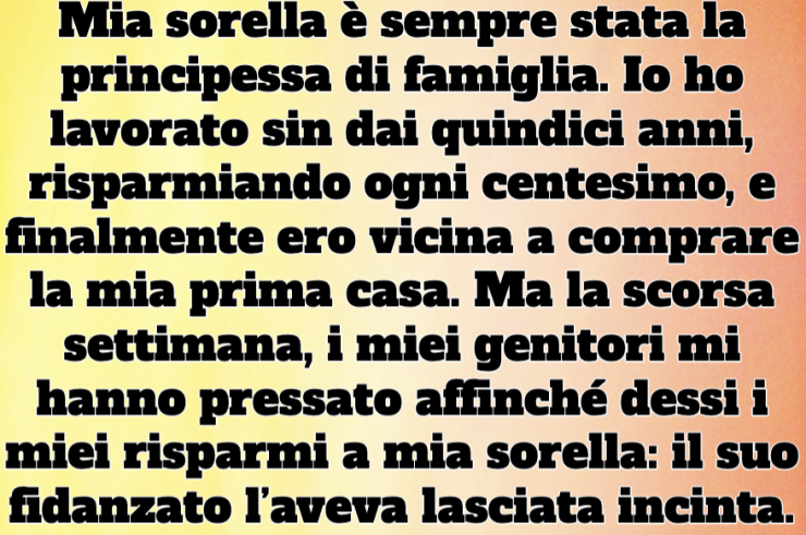 Mia sorella è sempre stata la principessa di famiglia. Io ho lavorato sin dai quindici anni, risparmiando ogni centesimo, e finalmente ero vicina a comprare la mia prima casa. Ma la scorsa settimana, i miei genitori mi hanno pressato affinché dessi i miei risparmi a mia sorella: il suo fidanzato l’aveva lasciata incinta. Ho rifiutato. E il sangue mi si è gelato quando ho scoperto che anni prima aveva falsificato un documento legale cruciale, e che quella gravidanza improvvisa era solo una distrazione strategica per coprire un debito finanziario ben più grave.