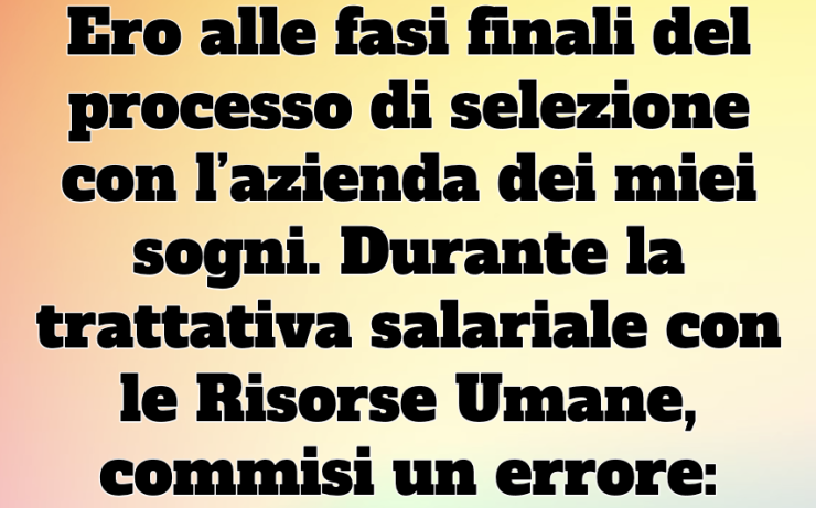 Ero alle fasi finali del processo di selezione con l’azienda dei miei sogni. Durante la trattativa salariale con le Risorse Umane, commisi un errore: mentii dicendo di avere un’altra “offerta più forte” da parte di un’altra azienda. Quando mi chiesero di inviare la lettera con l’offerta, andai nel panico.