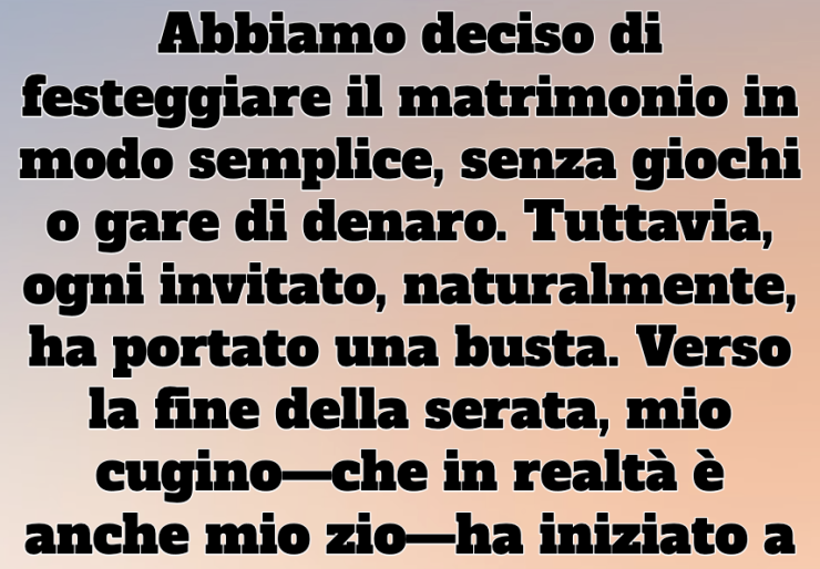 Avevamo deciso di celebrare il matrimonio in modo semplice, senza gare di generosità o ostentazioni di denaro. Ma, naturalmente, ogni invitato portò la sua busta.