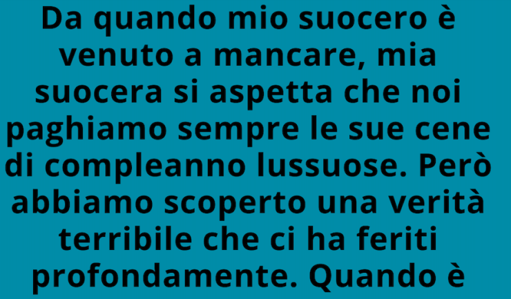 Da quando mio suocero è venuto a mancare, mia suocera si aspetta che paghiamo noi la sua sontuosa cena di compleanno. Ma abbiamo scoperto una verità terribile che ci ha profondamente feriti. Quando arrivò il conto, mio marito stupì tutti dicendo: «Mamma, non pagheremo più. Sappiamo già che hai usato i soldi dell’assicurazione sulla vita di papà per giocare d’azzardo e hai mentito dicendo di essere al verde».