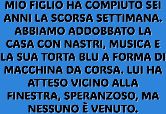 Mio figlio ha compiuto sei anni la scorsa settimana. Abbiamo addobbato la casa con nastri, musica e la sua torta blu a forma di macchina da corsa. Lui ha atteso vicino alla finestra, speranzoso, ma nessuno è venuto. Mentre lo mettevo a letto, controllai il telefono e rimasi di sasso. I genitori dei suoi cosiddetti amici stavano prendendomi in giro, scrivendo che stavo cercando troppo e che mio figlio era un bambino impossibile da gestire, motivo per cui avevano tutti portato i loro figli al parco divertimenti invece che alla nostra festa.