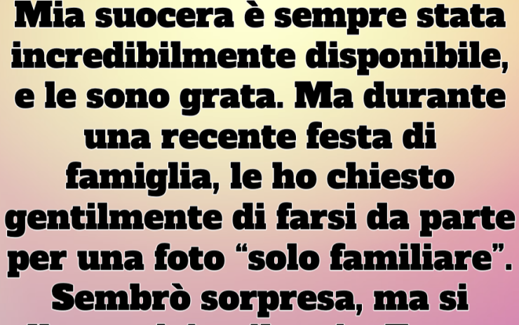 Mia suocera è sempre stata incredibilmente disponibile, e le sono grata. Ma durante una recente festa di famiglia, le ho chiesto gentilmente di farsi da parte per una foto “solo familiare”.